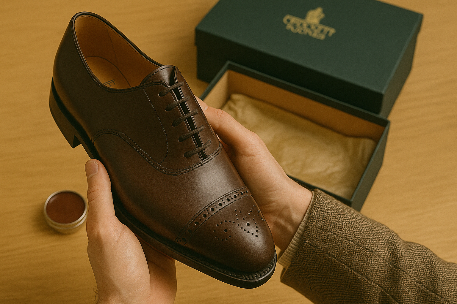 ラグジュアリーシューズ・イメージ 革靴の名門・クロケット&ジョーンズ。上質な作りと美しいシルエットで高い評価を受けていますが、その一方で「思ったよりきつい」「履き始めが痛い」と感じる人も少なくありません。 特に新品特有の革の硬さや、ラスト(木型)の特性、さらには足の形との細かな相性によってフィット感が大きく変化するため、最初の履き心地には個人差が生まれやすいのが特徴です。 だからこそ、革靴の構造やラストごとの違いを理解し、適切な慣らし方や対処法を押さえることが、快適に履き続けるうえで非常に重要にな ...