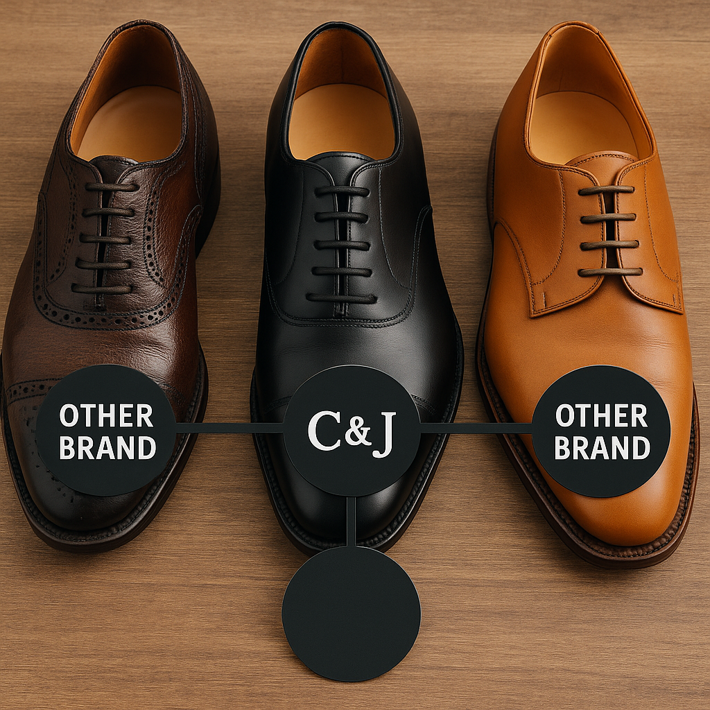 これに対し、C&Jは「毎日履ける気品」を備えており、華美すぎない落ち着いた佇まいが幅広いスタイルに調和します。