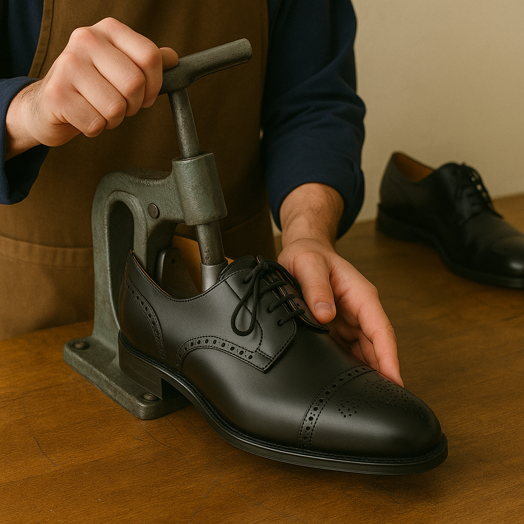 職人は革の厚みや硬さ、伸びやすい方向、さらには靴全体の構造バランスまで細かく判断しながら少しずつ調整を行うため、仕上がりがとても自然で、靴全体のバランスを損なうことなく圧迫ポイントのみを適切に緩和することができます。