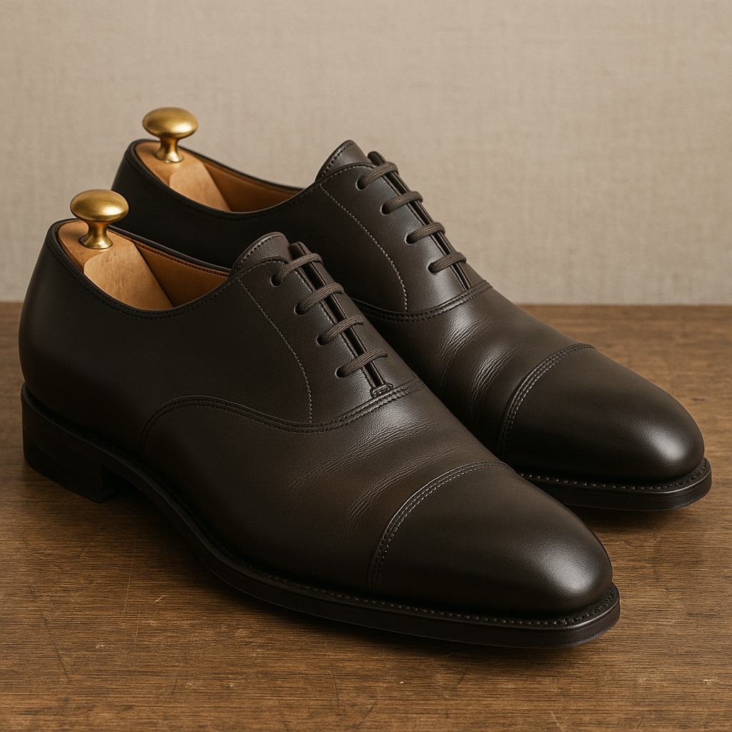 エドワードグリーンのカーフレザーは、世界的にも評価が高い最高級レベルの素材。細かい銀面としなやかな質感が特徴で、履き込むほどに深みのある艶が生まれます。