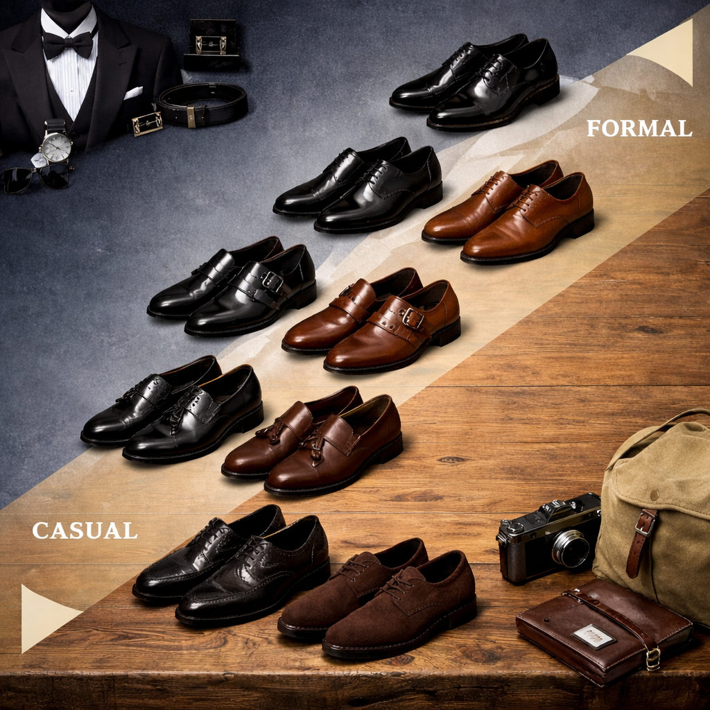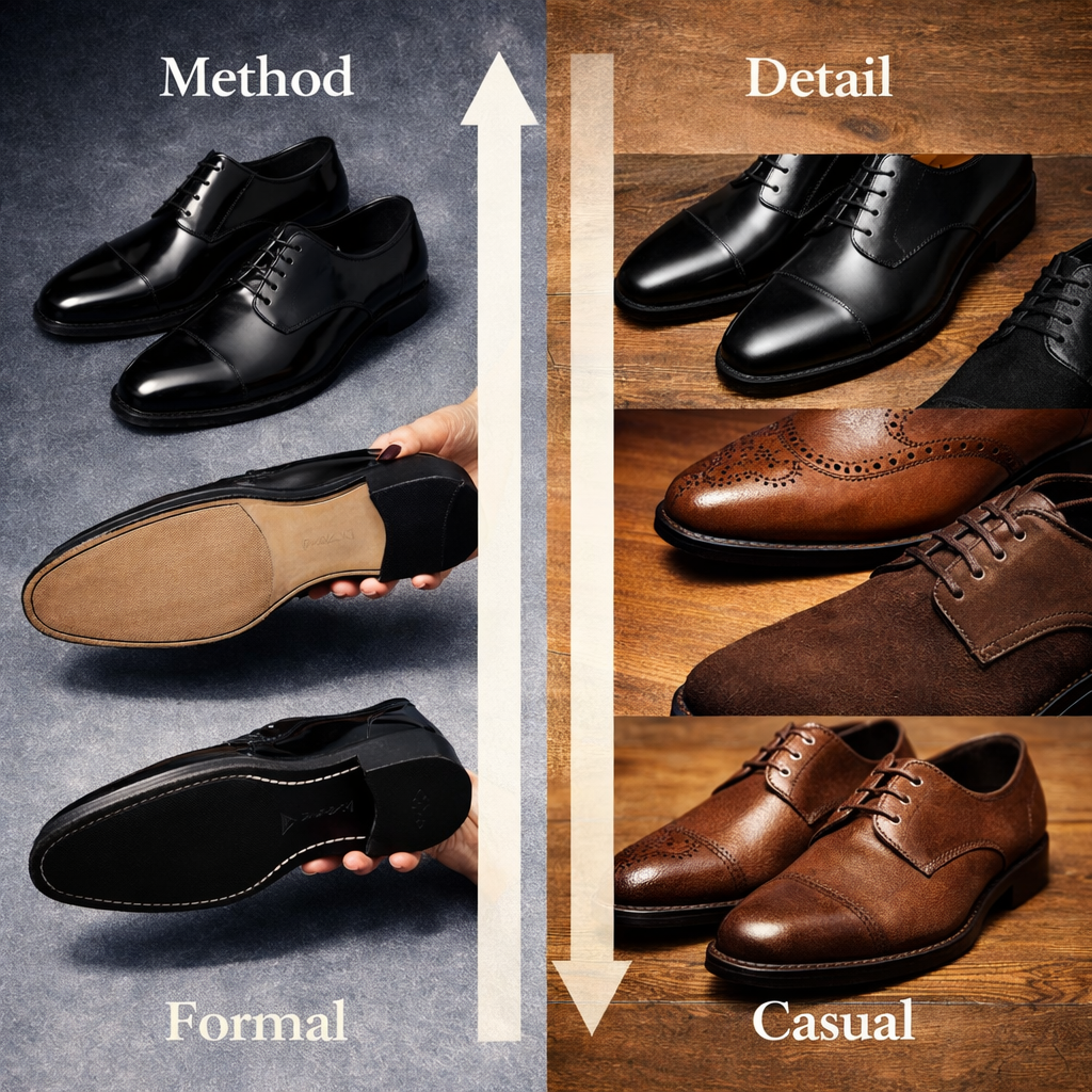 本記事では、革靴フォーマル度の基本的な考え方から、デザイン・製法・シーン別の具体的な選び方までを体系的に整理し、誰でも一目で判断できるよう分かりやすく解説していきます。