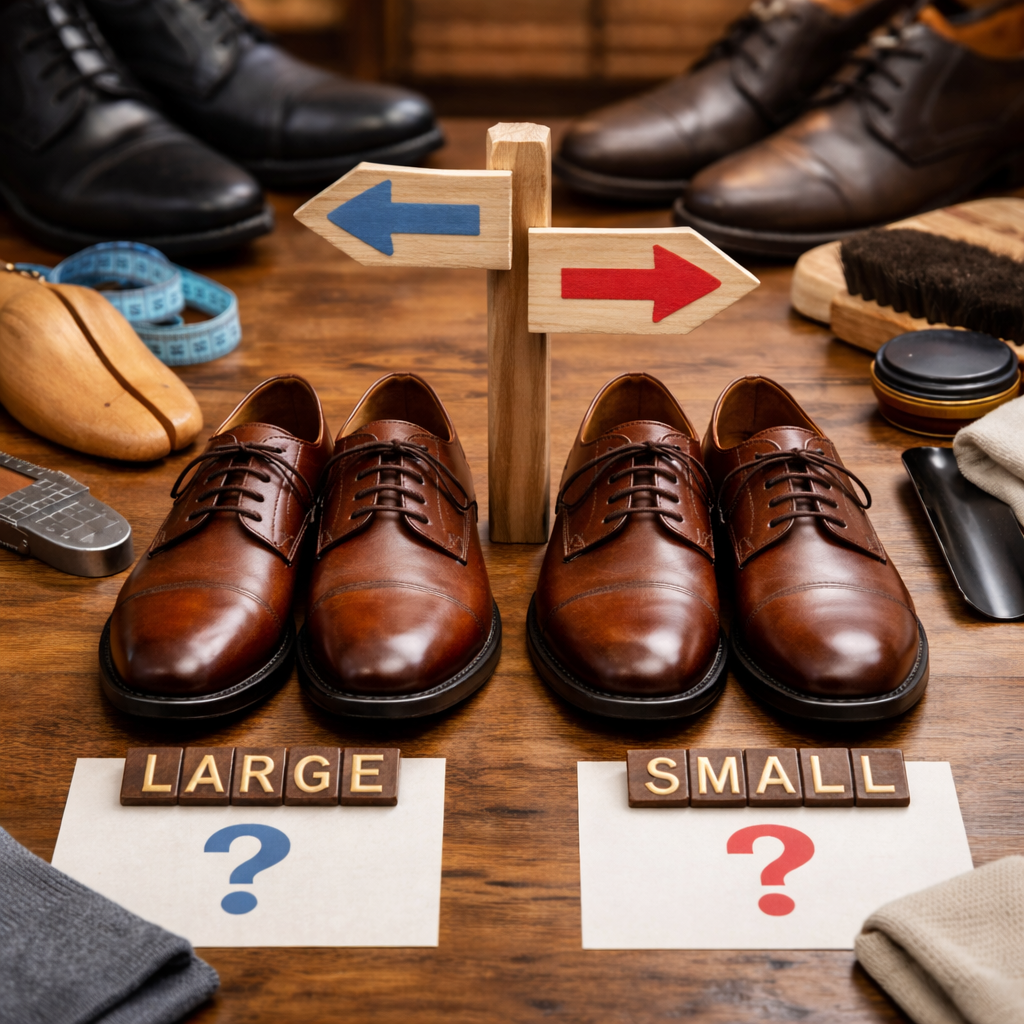革靴のサイズ選びで多くの人が悩むのが、「大きめを選ぶべきか、それとも小さめか」という問題です。