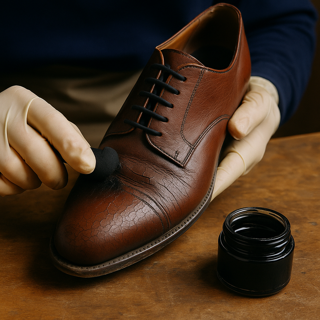 革靴のひび割れは主に 乾燥・摩擦・水分・紫外線 によって引き起こされます。