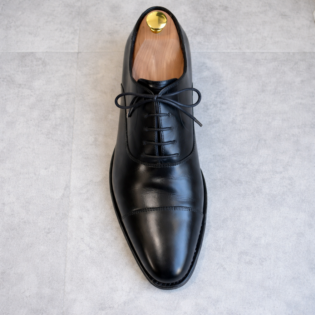 余分な要素が視界に入らないことで、革靴本来のフォルムや革の質感、つま先から甲にかけてのラインがより際立ち、全体として洗練された印象を与えやすくなります。
