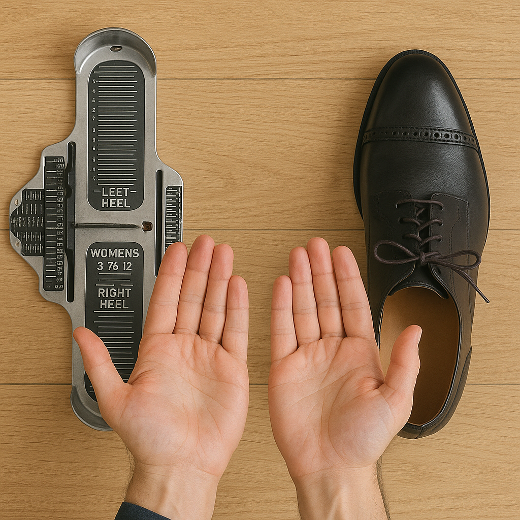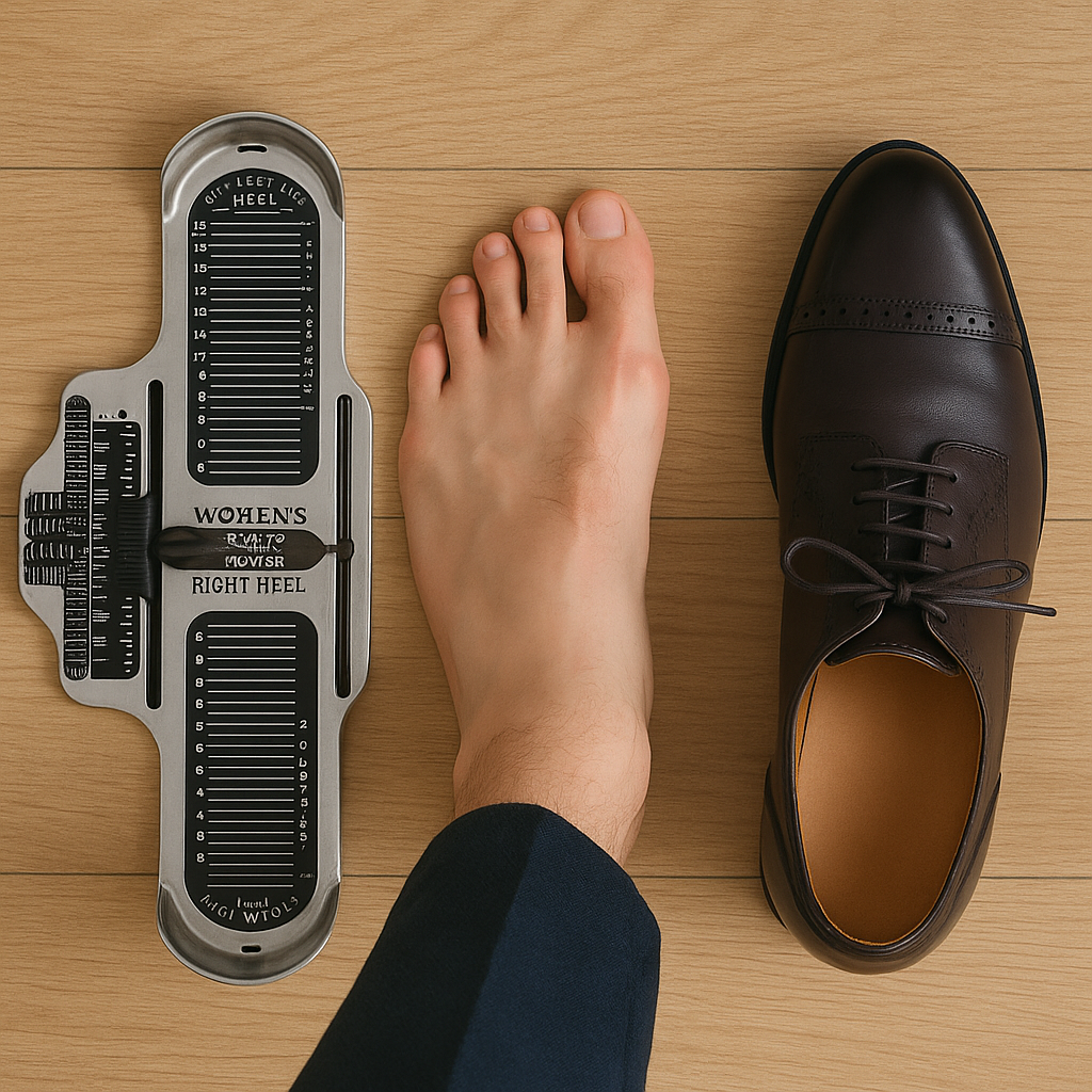 まず見直すべきなのが、足のサイズ計測です。革靴がきつい原因の多くは、購入時のサイズ判断にあり、ここを誤るとその後の調整では限界が出てしまいます。