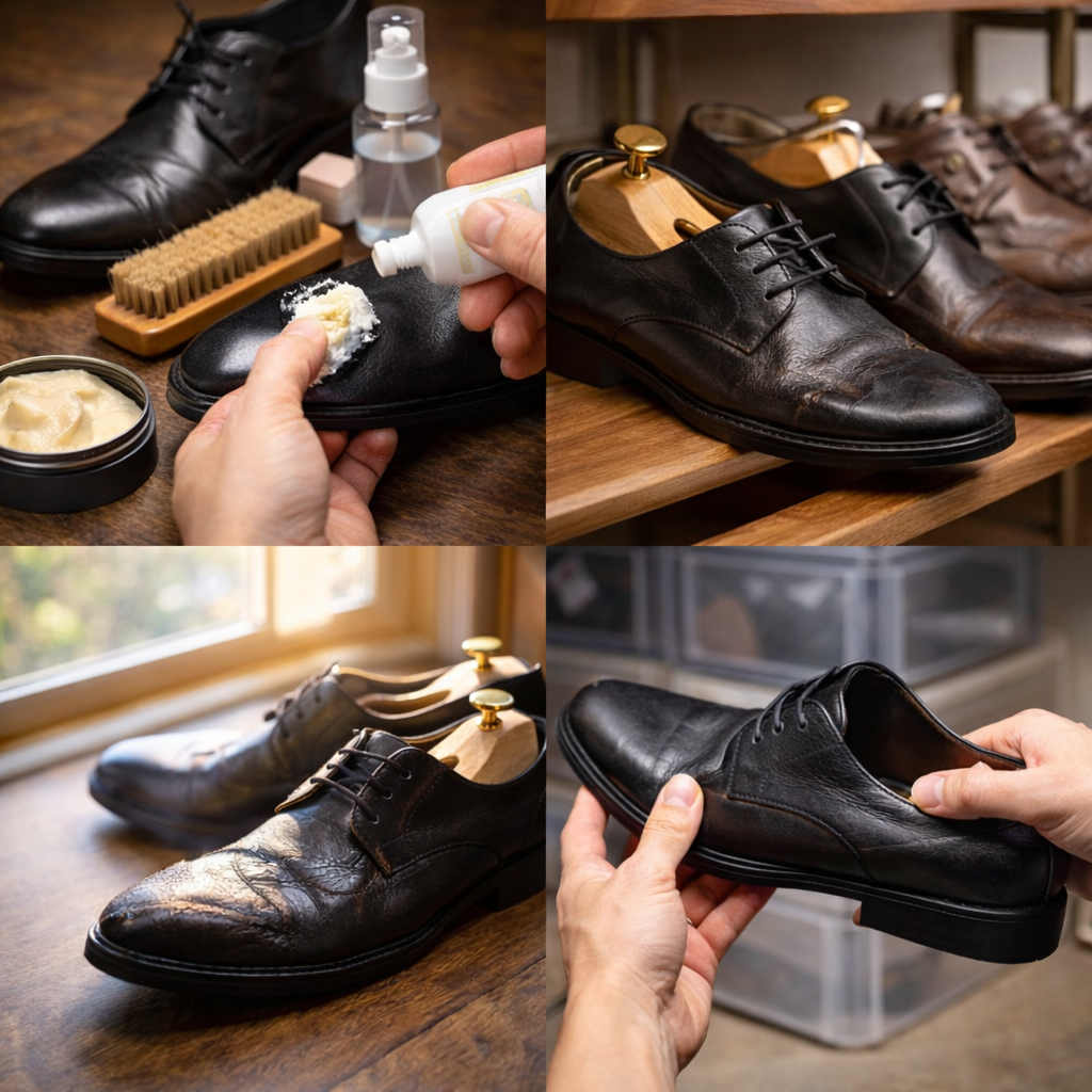 これらのポイントを意識した適切な保管を行うことで、革の状態を安定させやすくなり、履いていない間に進行する硬化や劣化を防ぎやすくなります。
